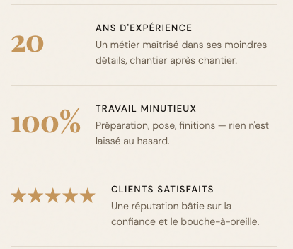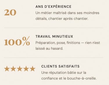 Tout a commencé par une passion : celle des matières, des finitions soignées, du résultat qui dure. Une passion qui s'est transformée au fil des années en un véritable savoir-faire, celui d'artisans qui aiment ce qu'ils font et ça se voit.